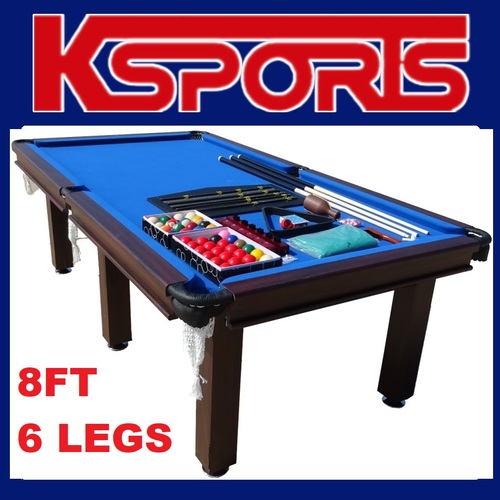 There are 6 cushion sides, consisting of three pairs of identical cushions. Both cushions with identical curves are located on opposite sides of the table. The remaining four cushions are placed along the long sides, with the smaller curves creating the middle pockets and the larger curves forming the corner pockets.